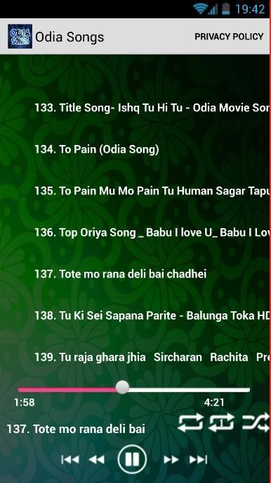 Banyak Terbaik Odia lagu yang dapat Anda mendengarkan di sini. bebas menginstal aplikasi, pilih lagu yang Anda suka dan bermain. Aplikasi ini hanya menyediakan Mp3 Streaming dan tidak ada fitur download karena dapat melanggar hak cipta.