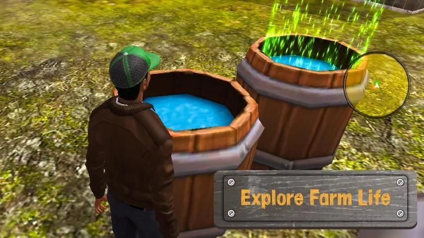 - Jelajahi tanah dalam peternakan bukit dengan ladang dan pertanian