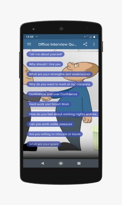 Office Interview Question Answer App Helps to Prepare For Office Interview Exam. This app helps to get best job of your dreams. Candidate when apply for job interview he would be asked such questions that are present in this app. So prepare this question for an interview exam. Candidate who qualify interview exam will get their dream job. App has all the questions that are asked in the interview exam. This will guide you for an interview.