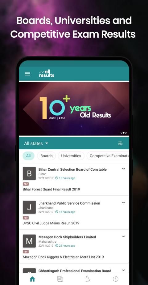Aplikasi ini menyediakan cara mudah untuk mendapatkan papan, universitas dan hasil ujian kompetitif. Aplikasi ini memberikan hasil lama juga.