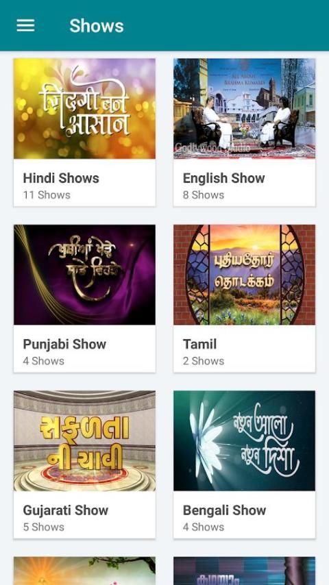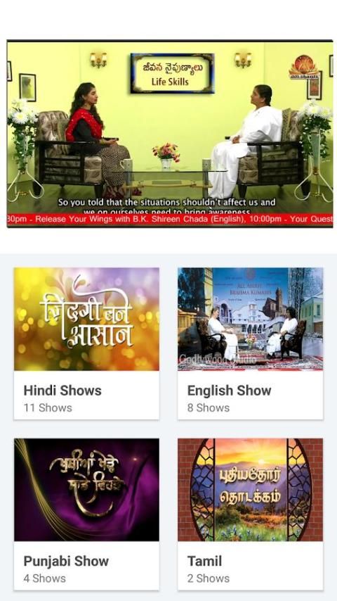 App ini menyediakan berbagai Shows rohani Memperkaya Bicara dalam berbagai bahasa: Hindi, Bahasa Inggris, Gujarati, Punjabi, Bengali, Marathi, Nepal dan banyak lagi.