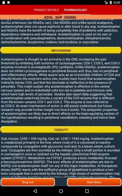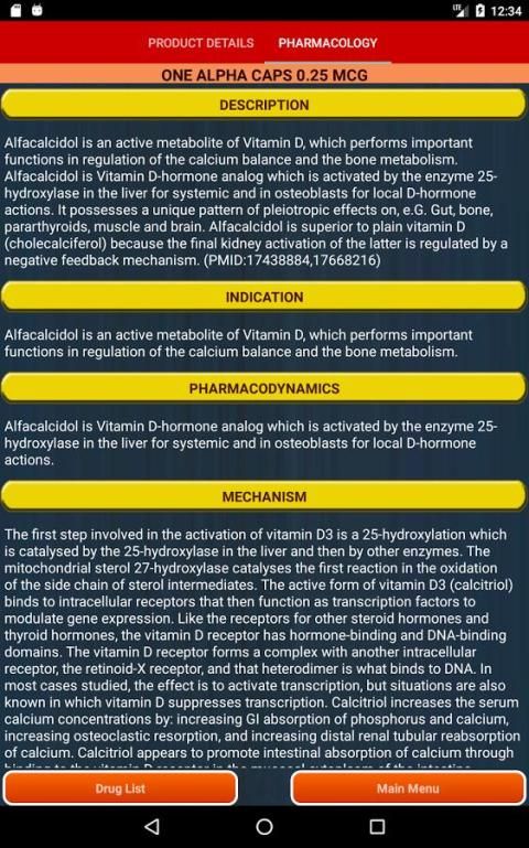 App ini memberikan informasi obat di bawah 2 judul - Detail Dasar dan Lanjutan Farmakologi Rincian untuk pengguna.