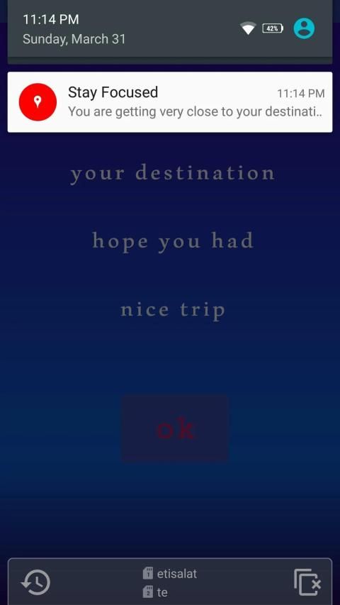 sometimes you just feel tired on transportation and want to take a nap but worried that you will miss your stop or you don't know where your stop is , now you can sleep safe and don't need to focus on the road all the time , On Location will alert you when you getting close to the location you want by playing your ringtone ,starting vibration and show you a notification .