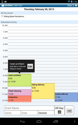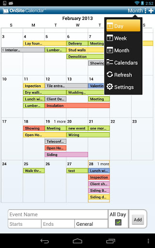 OnSite Calendars is a powerful cost saving tool that will increase productivity for contractors, architects, engineers, and others who schedule appointments and meetings from the field. No more carrying bulky planners! Start seeing them instantly on your Android Device with OnSite Calendars.