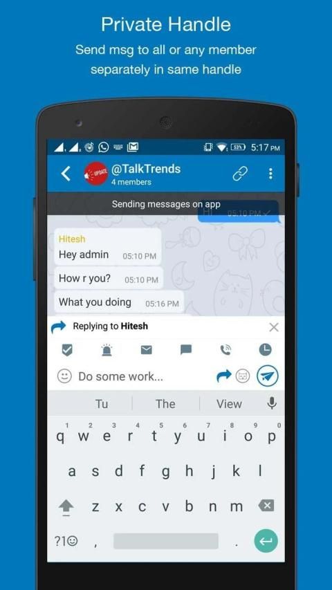 ● GRUP PRIBADI: Aplikasi ini menawarkan untuk membuat grup pribadi di mana admin dapat membaca semua pesan dari anggota. Anggota akan melihat pesan dari admin yang dikirim ke semua atau hanya mereka. Anggota juga tidak mendapatkan informasi tentang anggota lain. Fitur ini terutama dapat membantu bisnis untuk terlibat lebih alami dengan pelanggan mereka.