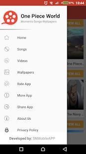 One Piece World is an app to present best One Piece moments and that including best One Piece scenes where you will find top One Piece scenes, and best One Piece songs for all top One Piece songs and also best One Piece wallpapers. So you can be able to set best One Piece wallpapers, and there is more in One Piece World.