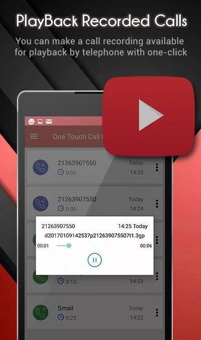 One Touch CallRecorder adalah yang terbaik aplikasi perekam panggilan otomatis benar-benar gratis untuk otomatis merekam panggilan telepon secara real time hanya dengan satu sentuhan, dan hanya menjaga panggilan direkam Anda inginkan.
