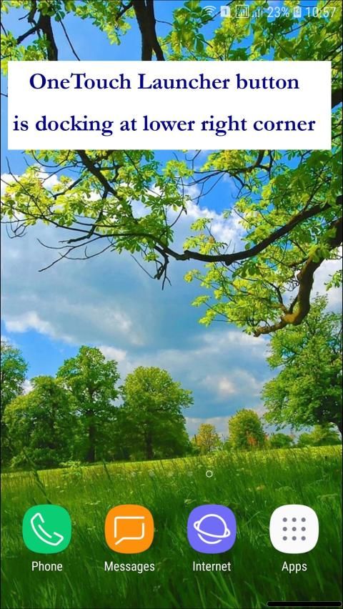 OneTouch Launcher is an add-on to your current / stock launcher. It appears as a floating home button where you can easily go home or launch anything with just one touch. At start, it minimizes into a small home button. Briefly touch it to go home or swipe it up to show the start menu pad and push your finger to a desired item and release to launch the item instantly, all happen within one touch of your finger