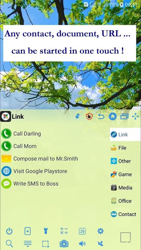 • Launcher for Android: Exactly one touch to launch any apps or custom shortcuts available in your phone or tablet