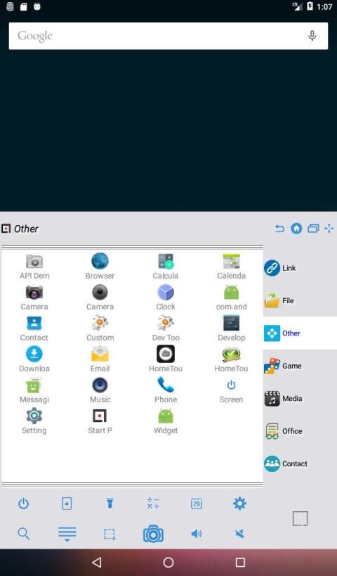 • Home button, start menu and control center: it is both a virtual home button and a powerful start menu, and it can change system settings as a one-touch portable control center
