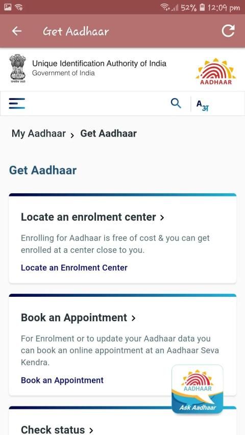 Dapatkan Kartu Aadhaar Anda & Periksa Status, Cetak Ulang Online.