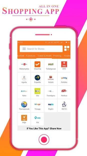 In this India’s best top 10 all in one app, we have included different categories of shopping apps. You’ll find so many different online shopping all categories such as General Shopping, Fashion, Grocery, Recharge, Baby Fashion, Home Service, Classified, Furniture, Travel & Hotel, Printing, Finance, Real estate, Car, Movie, Health, Electronics, Jewelry, Books, Fitness Sports, Flower & Gifts, Fish Market, Perfumes, Eyewear, Car Service, Job, Coupon, Marriage, Sports, International, News, and Social Media. You can buy from top sites like Amazon, Flipkart, Snapdeal, Myntra, Paytm, Makemytrip, News & Social Media More Website Included in this “online shopping apps”.
