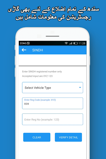 Verifikasi Pendaftaran Kendaraan Sindh - Provinsi Sindh Pengguna dapat mengetahui detail pendaftaran kendaraan tertentu di bagian aplikasi ini. Masukkan nomor pendaftaran dan Anda akan mendapatkan detail kendaraan.
