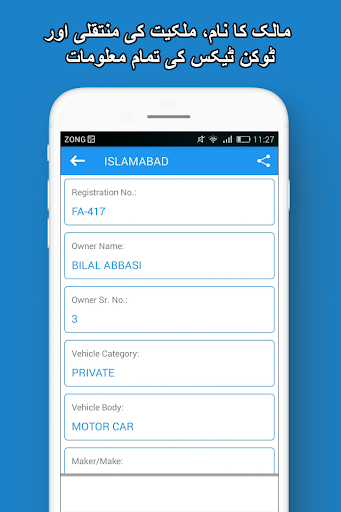 Verifikasi Pendaftaran Kendaraan Islamabad - Di bagian aplikasi ini, Anda dapat menemukan detail pendaftaran kendaraan yang terdaftar di Islamabad. Yang harus Anda lakukan adalah memasukkan nomor registrasi kendaraan dan Anda akan mendapatkan detail kendaraan.