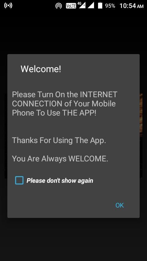 Please turn on the internet connection of your android device to use the app.