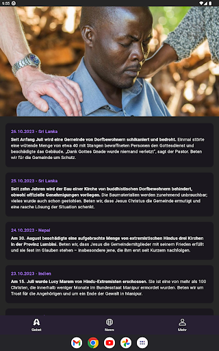 Dengan aplikasi resmi dari pintu terbuka Jerman, kami ingin memungkinkan Anda untuk berdoa dengan cara yang ditargetkan untuk orang -orang Kristen yang dianiaya setiap hari.Aplikasi ini mencakup fungsi-fungsi berikut: