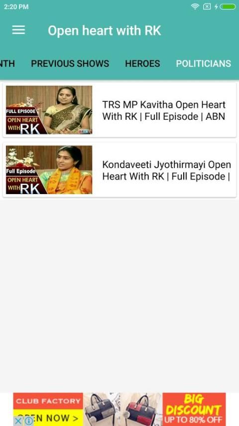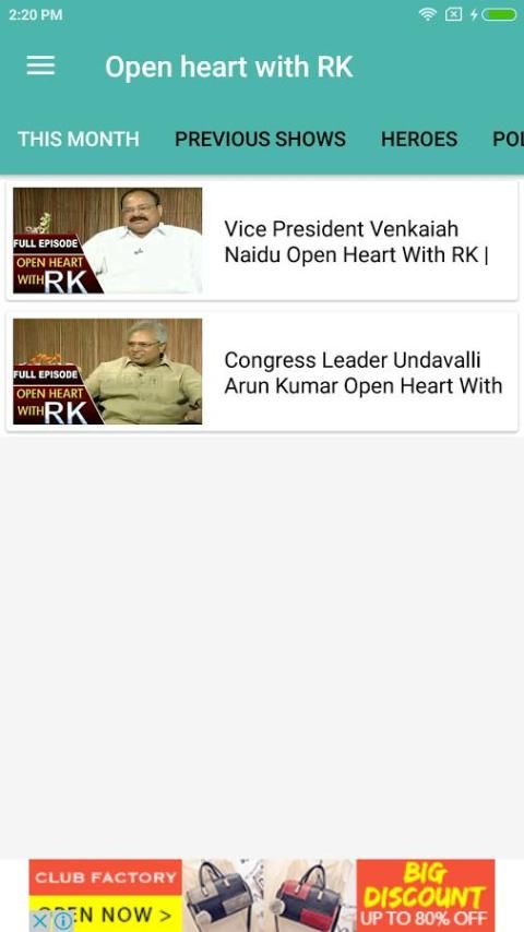 Diselenggarakan oleh honcho kepala ABN Andhrajyothi, Vemuri Radha Krishna, Open Heart Dengan RK populer untuk humor yang sedikit berani host dan wawasan sering mengganggu menjadi selebriti aspek swasta dan publik. Untuk semua penggemar Open Heart Dengan RK, ini adalah salah satu kesempatan lagi untuk meninjau kembali momen favorit mereka.