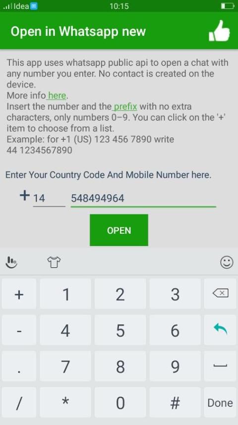 Tidak ada kontak dibuat pada perangkat, sehingga Anda tidak perlu menyimpan nomor pada daftar kontak Anda untuk membuka obrolan. Cukup buka aplikasi, masukkan nomor, klik tombol dan chatting akan terbuka (jika nomor tersebut ada, jika tidak Whatsapp akan memberitahu hal itu).