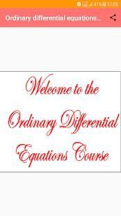 It's my first application for diploma thesis.The purpose of this application was to investigate the digital course materials an Android application developing with an appropriate software including Lecture notes, Exercises, tests and interactive implementations about Ordinary Differential Equations course. An android is an open source mobile operating system contributed by Google. When we build that application, we used an Android studio. An android studio is the official integrated development environment(IDE) for Google's Android. It is available for download on Windows, Mac OS and Linux based operating systems. In general, Google play is the most secure place to download the mobile applications for Android system. The notes will be taken from related books about ordinary differential equation. The application will be had buttons are notes, formulas, quiz, and solved examples about first order ordinary differential equation, second order ordinary differential equation and some of special equations.