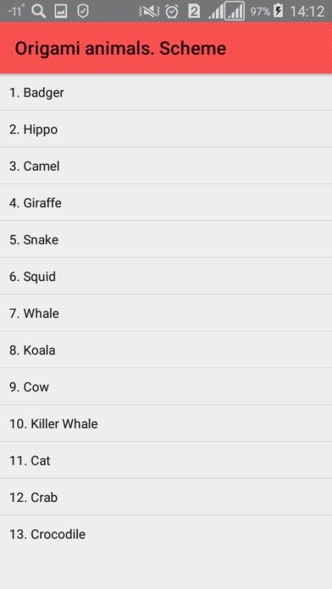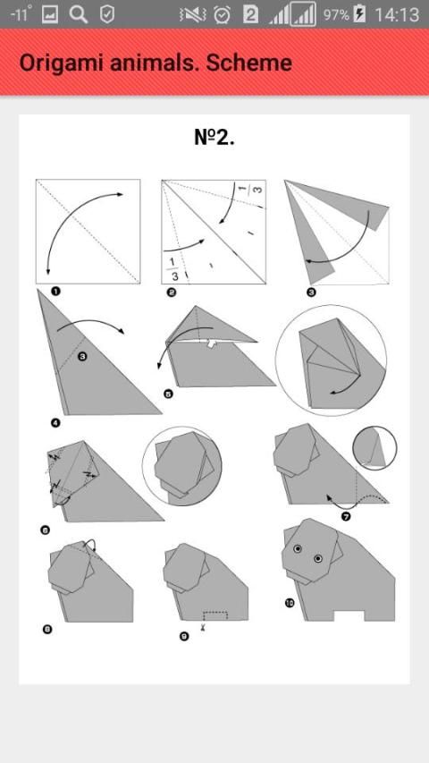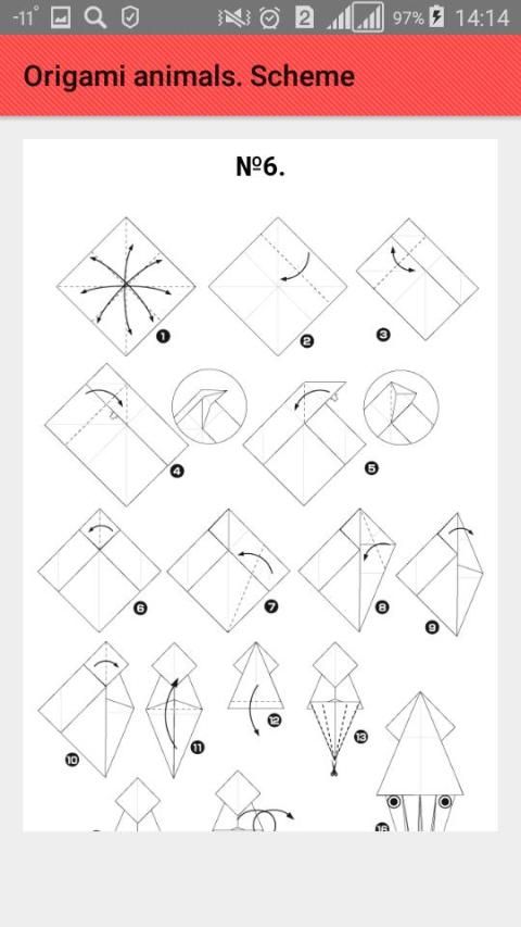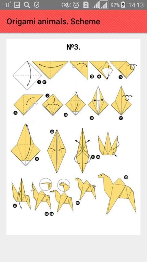 Schemes of origami animals: