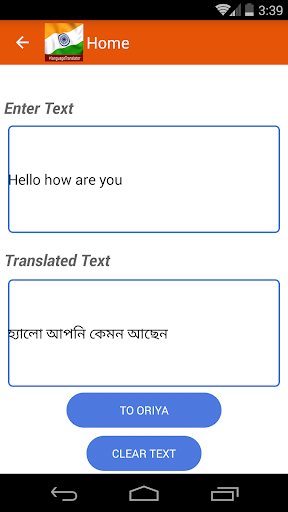 Aplikasi bekerja dalam mode kedua, penerjemah bahasa Inggris atau Bahasa Inggris ke Oriya Translator.
