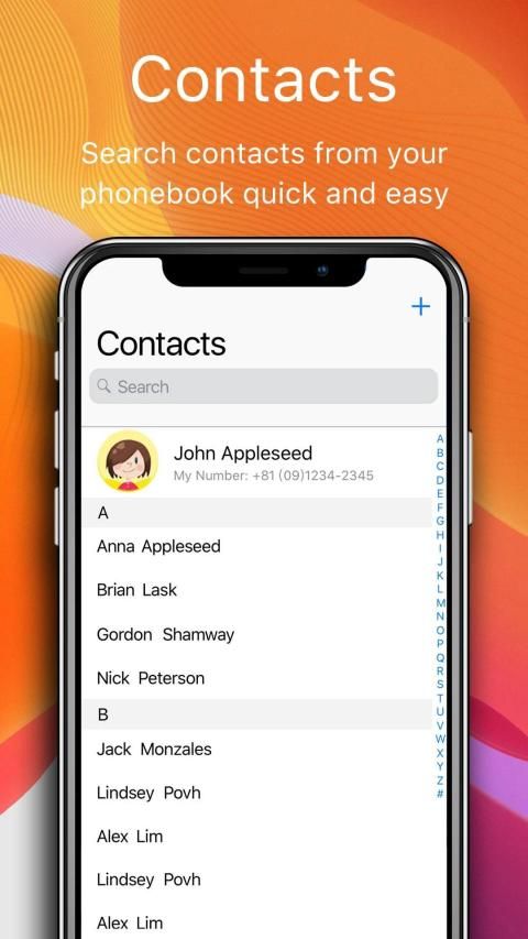 5. Quick Contacts Search. Supporting search by Initial and phone number.