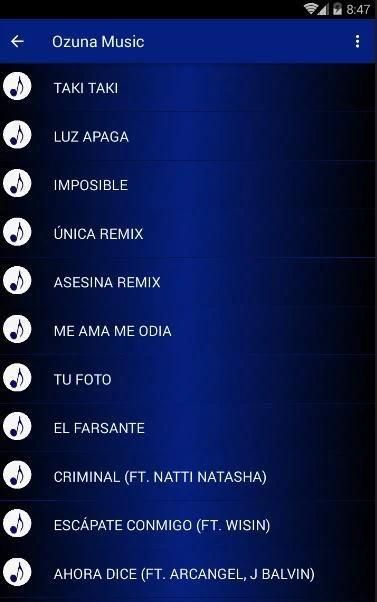 Aplikasi Musik, Video dan Lirik "Ozuna Musica" Juan Carlos Ozuna Rosado, dikenal dengan nama panggungnya Ozuna, adalah reggaeton Puerto Rico dan penyanyi jebakan Latin. (Sumber Wikipedia)