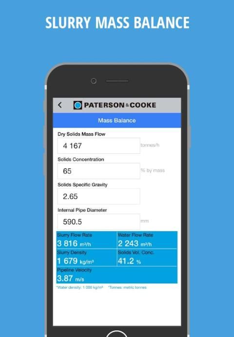 Paterson & Cooke adalah pemimpin dunia dalam teknologi proses lumpur. P & C telah menciptakan aplikasi mobile ini untuk memungkinkan pengguna untuk dengan cepat mengevaluasi transportasi bubur parameter proses sistem kunci.