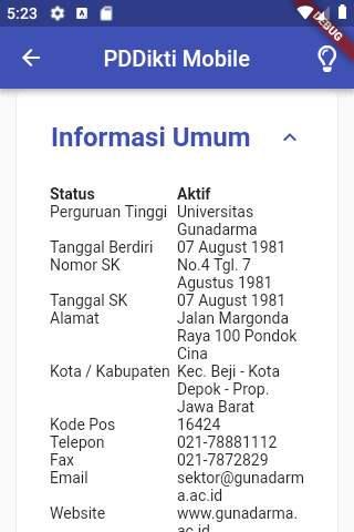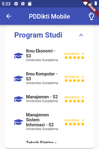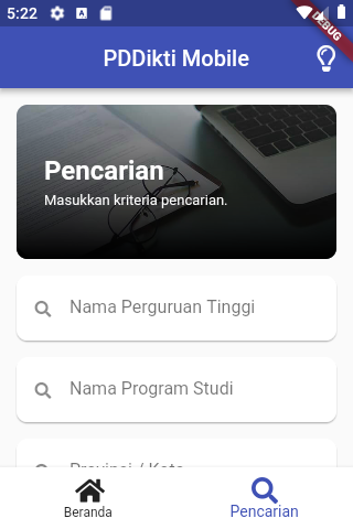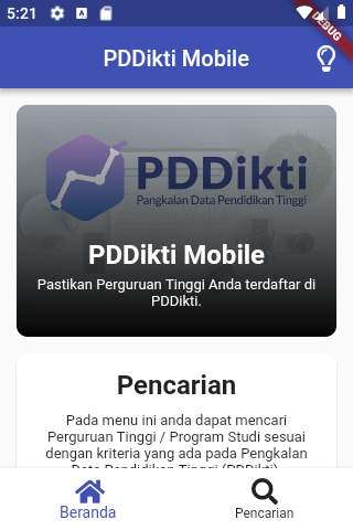 PDDikti Mobile merupakan aplikasi besutan Pusat Data dan Informasi Kementerian Riset, Teknologi, dan Pendidikan Tinggi berfungsi untuk pencarian data perguruan tinggi sebagai rujukan informasi perguruan tinggi dan memberikan kemudahan bagi para pengguna --khususnya bagi calon mahasiswa-- yang ingin mengakses informasi data seputar perguruan tinggi dimanapun dan kapanpun.