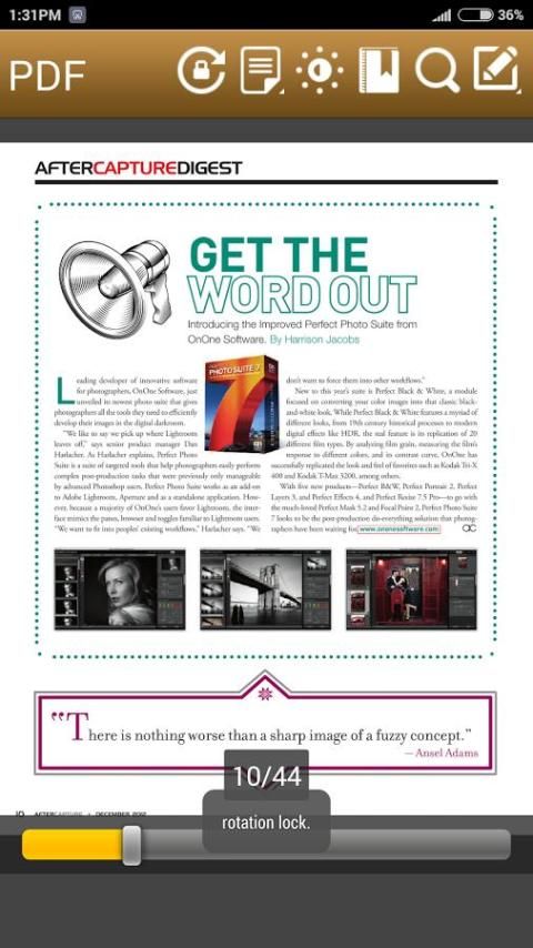 • Dapat mengatur orientasi statis sehingga tidak memutar PDF bahkan saat telepon tilt sehingga konsentrasi tidak mengerem.