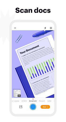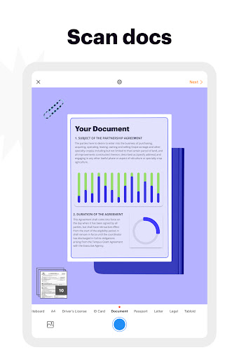 ✅ Gunakan kamera seluler untuk memotret dokumen apa saja danmenyimpannya berupa PDF. Tambahkan tanda tangan elektronik dengan satu ketukan jari dan kirim seketika dokumen ke tujuannya.