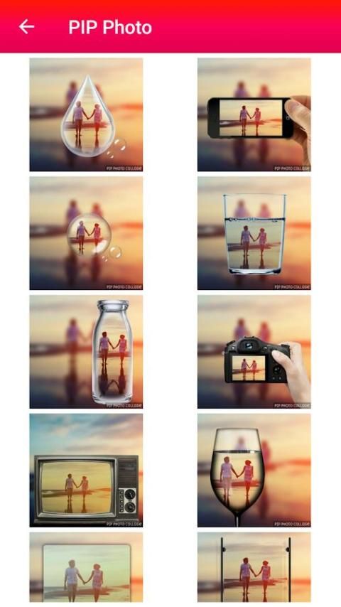 Ini memiliki banyak frame PIP yang sesuai gaya dan warna dan menciptakan Anda kolase PIP foto. Mengedit dengan emoji dan berbagi ke teman Anda. Kamera Aplikasi PIP ini dapat berbagi kolase dan gambar dalam jaringan sosial.