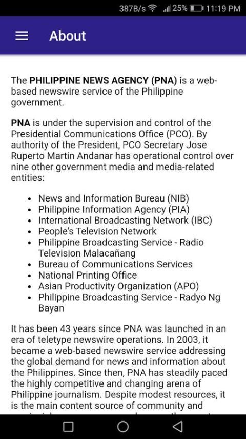 Ini adalah sebuah aplikasi yang menampilkan berita terbaru dari News Agency Filipina (PNA)