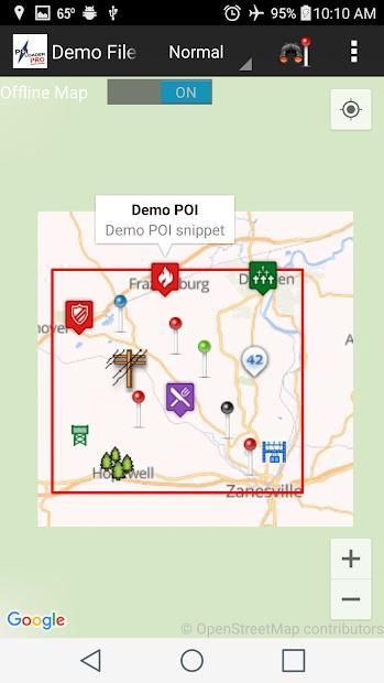 Impor, Ekspor, View, Edit dan Hapus file POI dan POI di Maps Google dan penggunaan mbtiles file untuk peta offline. Versi Pro memungkinkan Anda untuk bekerja benar-benar offline! Versi Pro menyediakan semua fungsi yang sama dengan versi non-Pro tapi dengan kemampuan tambahan tertera di bawah ini. Versi Pro dirancang untuk digunakan dengan aplikasi Android lain yang membutuhkan fungsi pemetaan dengan menyediakan API untuk berinteraksi dengan. Versi pro biasanya digunakan sebagai bagian dari solusi untuk alur kerja tertentu dan bukan aplikasi mandiri (meskipun itu bisa digunakan standalone). Oleh karena itu, memerlukan pembelian kunci lisensi untuk menggunakan.