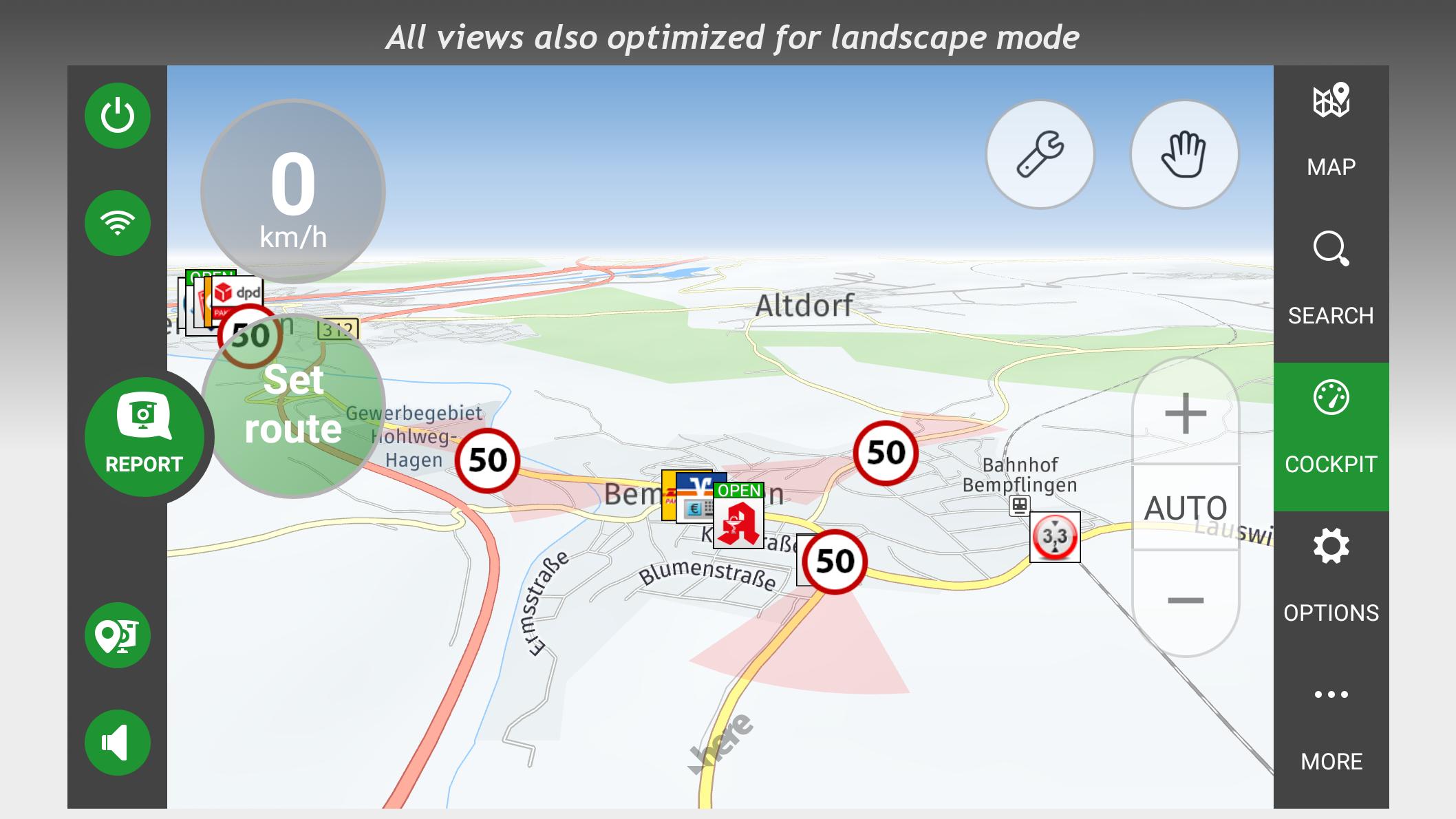 Having offline map and offline poi data available with PRO+ there is no heavy map or POI loading in background needed any more. This will save extensive data traffic and means much better performance and overall experience using the app.