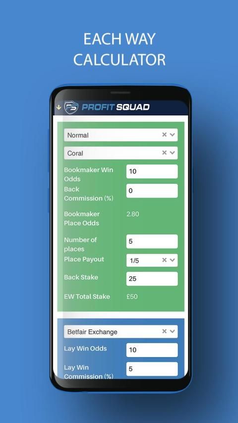 The full Profit Squad service can be accessed via the App or our website and includes all of the advanced tools including Oddsmatcher , Accumulator Tool , Dutching Tools and our Each Way Matcher.