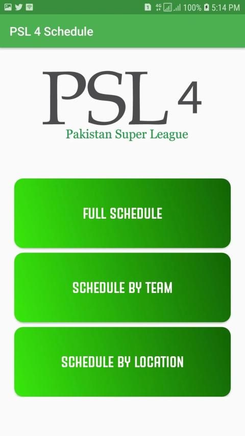PSL 4 akan dimulai pada 14 Februari 2019. Aplikasi PSL 4 menyediakan seluruh cakupan Acara, termasuk Jadwal, Pemain Tim, Tabel Poin, Kartu Skor, Skor Langsung, dan Hasil.