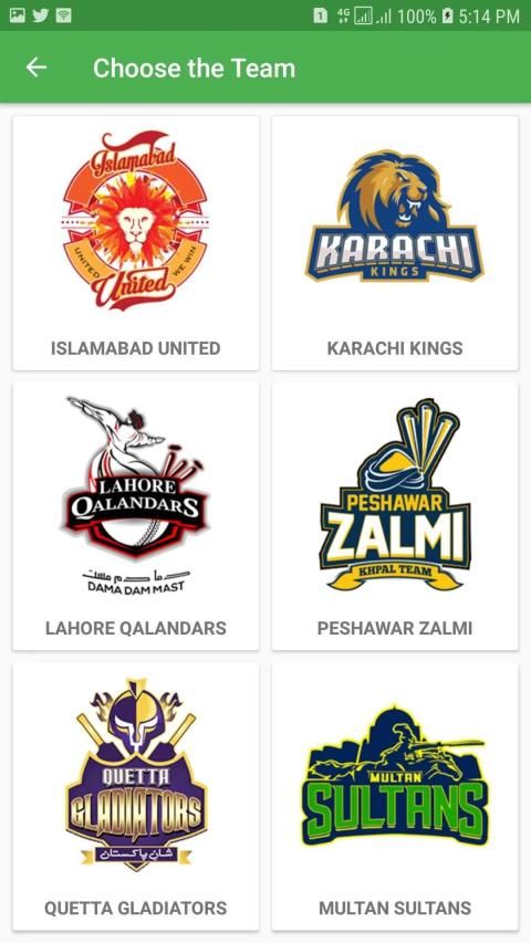 This year the following Teams are playing and you can get players info from PSL 4 app