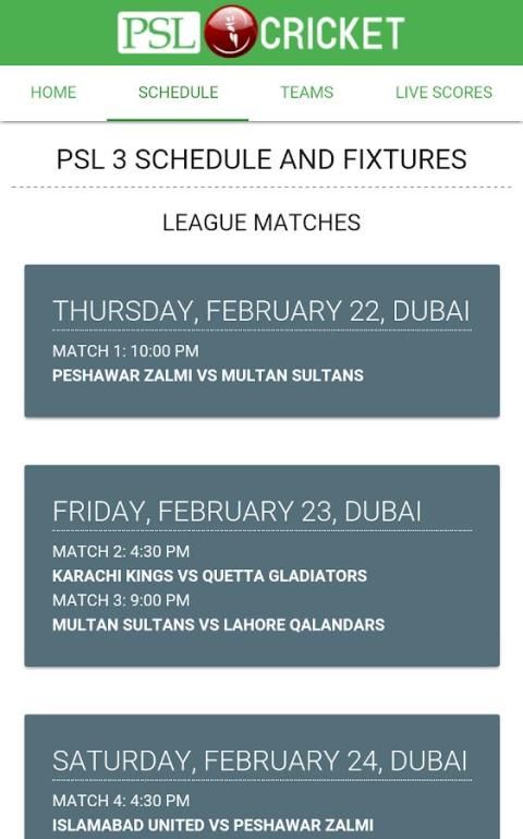 Aplikasi ini adalah untuk semua PSL (Pakistan Super League) penggemar Cricket benar. Aplikasi ini memiliki Jadwal Lengkap PSL 3 2018 Pakistan Cricket dengan statistik mengagumkan dan kinerja. Cara tercepat untuk Pakistan T20 jadwal liga super, update dan