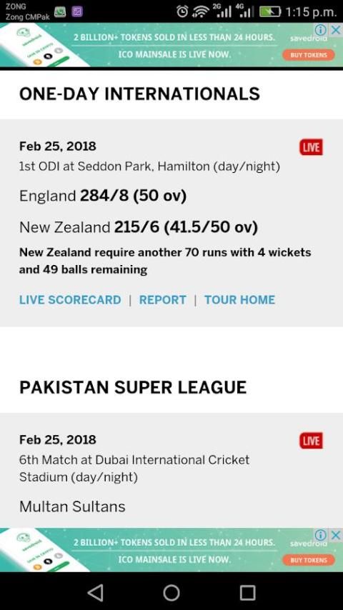 2. Zona Pertandingan: skor Live, bola dengan bola komentar, scorecard lengkap, cakupan pertandingan penuh, hasil terbaru, jadwal dan meja poin.