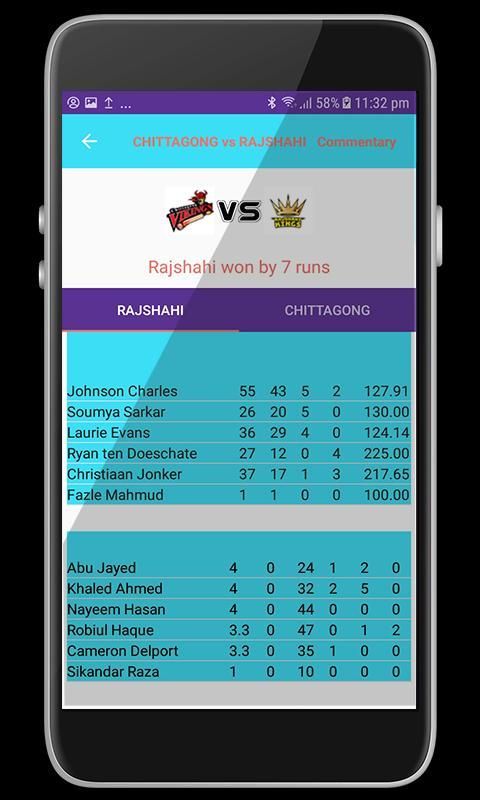 Aplikasi PSL Match Score menawarkan skor langsung penuh dengan komentar, jadwal, berita dan tabel poin.