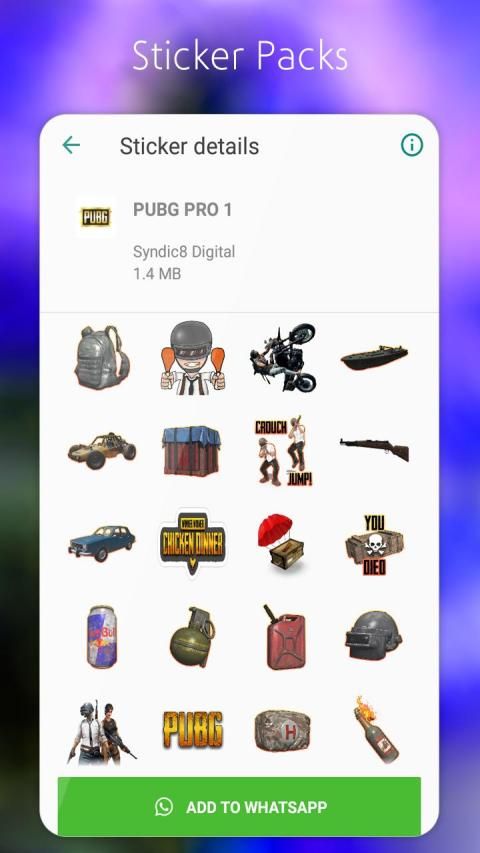 Stiker PUB-G untuk WhatsApp adalah aplikasi stiker menakjubkan yang gratis. Anda tidak perlu lagi menulis ekspresi Anda, perasaan Anda dapat mengekspresikan emosi Anda melalui App ini.