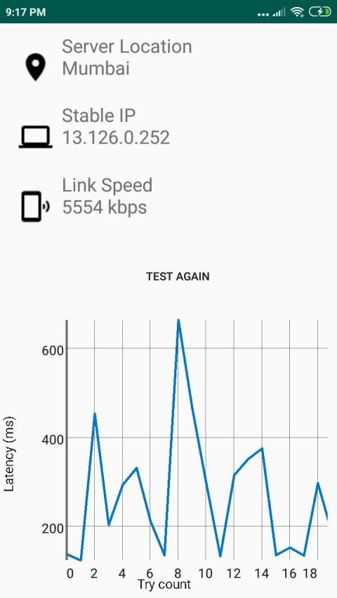The application also checks for the stability to the server with least latency. This is to ensure that the connection established has low latency over a period of time. 1-2 spikes of high latency might be acceptable, though more spikes of high latency ( >300ms) might not provide a good gaming experience to the user.
