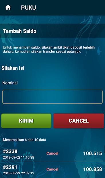 - Penambahan saldo dengan sistem tiket