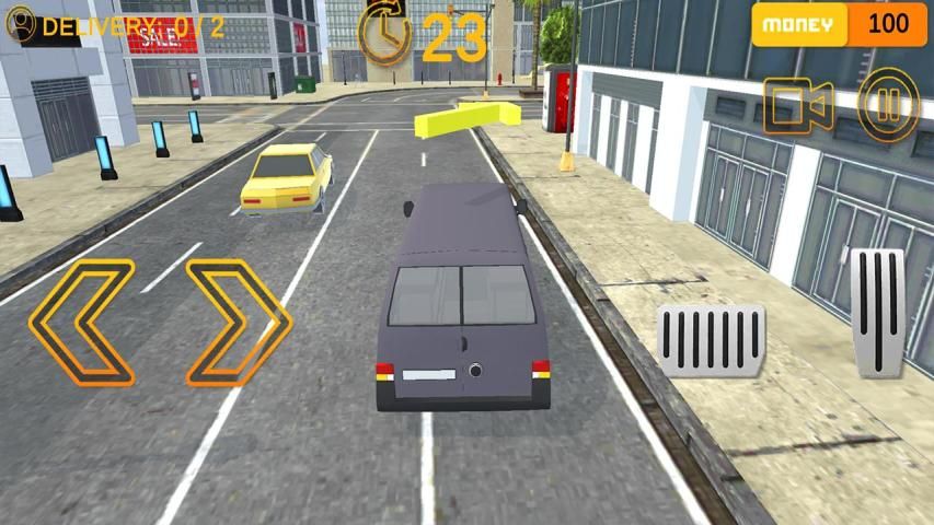 Drive fast through the city to deliver packages on time!