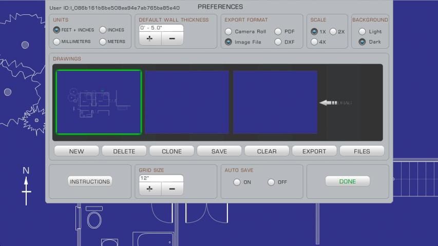 7) Pengekspor: Ekspor gambar Anda baik sebagai file gambar atau sebagai file PDF. Ekspor gambar bisa diemail ke alamat yang Anda inginkan. Jika Anda berada di daerah di mana tidak ada koneksi internet, Anda dapat menyimpan gambar Anda sebagai file gambar ke kamera gulungan iPad Anda atau menyimpan gambar saat dalam PadCAD dengan memulai gambar baru.