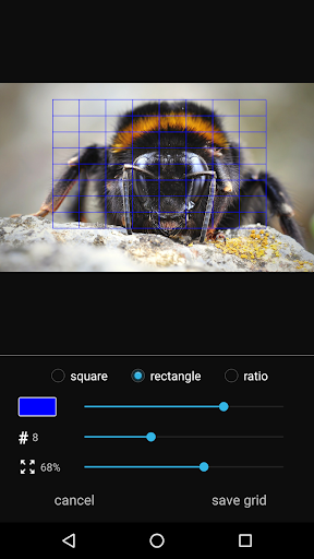 Gridder memungkinkan Anda untuk menerapkan grid ke gambar dari perangkat Anda atau foto Google dan menyimpannya ke perangkat Anda untuk referensi nanti.