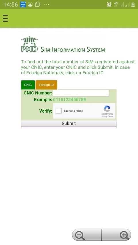 Aplikasi Verifikasi SIM Pakistan Anda bisa mendapatkan informasi verifikasi biometrik SIM yang ada di CNIC Anda dan Anda dapat memeriksa verifikasi SIM. Sangat penting sekarang hari bahwa berapa banyak tidak ada sim terdaftar di cnic Anda. Info verifikasi SIM Pakistan menunjukkan nomor mana di nama Anda. Yon hanya perlu memasukkan CNIC Anda dan kemudian Anda dapat melihat setiap detail pada CNIC Anda.