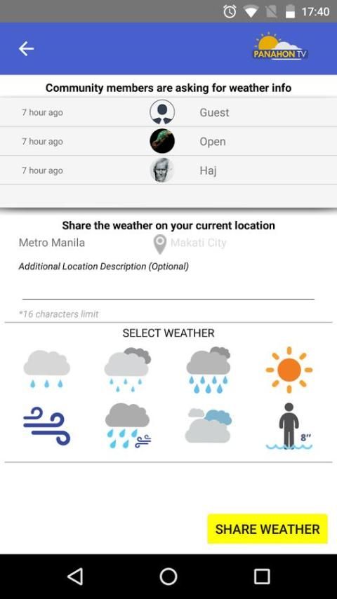 The Panahon Aplikasi Mobile memungkinkan Anda untuk melihat informasi cuaca datang langsung dari PAGASA (Filipina Atmosfer, Geofisika dan Astronomi Layanan Administrasi)!