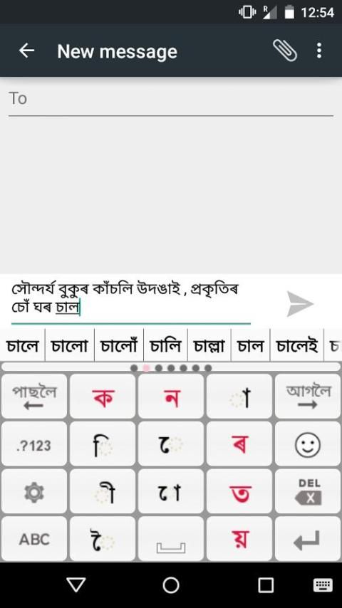 Dalam versi terbaru ini, Anda dapat mengetikkan dalam bahasa Inggris di antara Assamese, dengan menggunakan keyboard QWERTY. Satu dapat mengetik Assamese / angka bahasa Inggris, simbol dll
